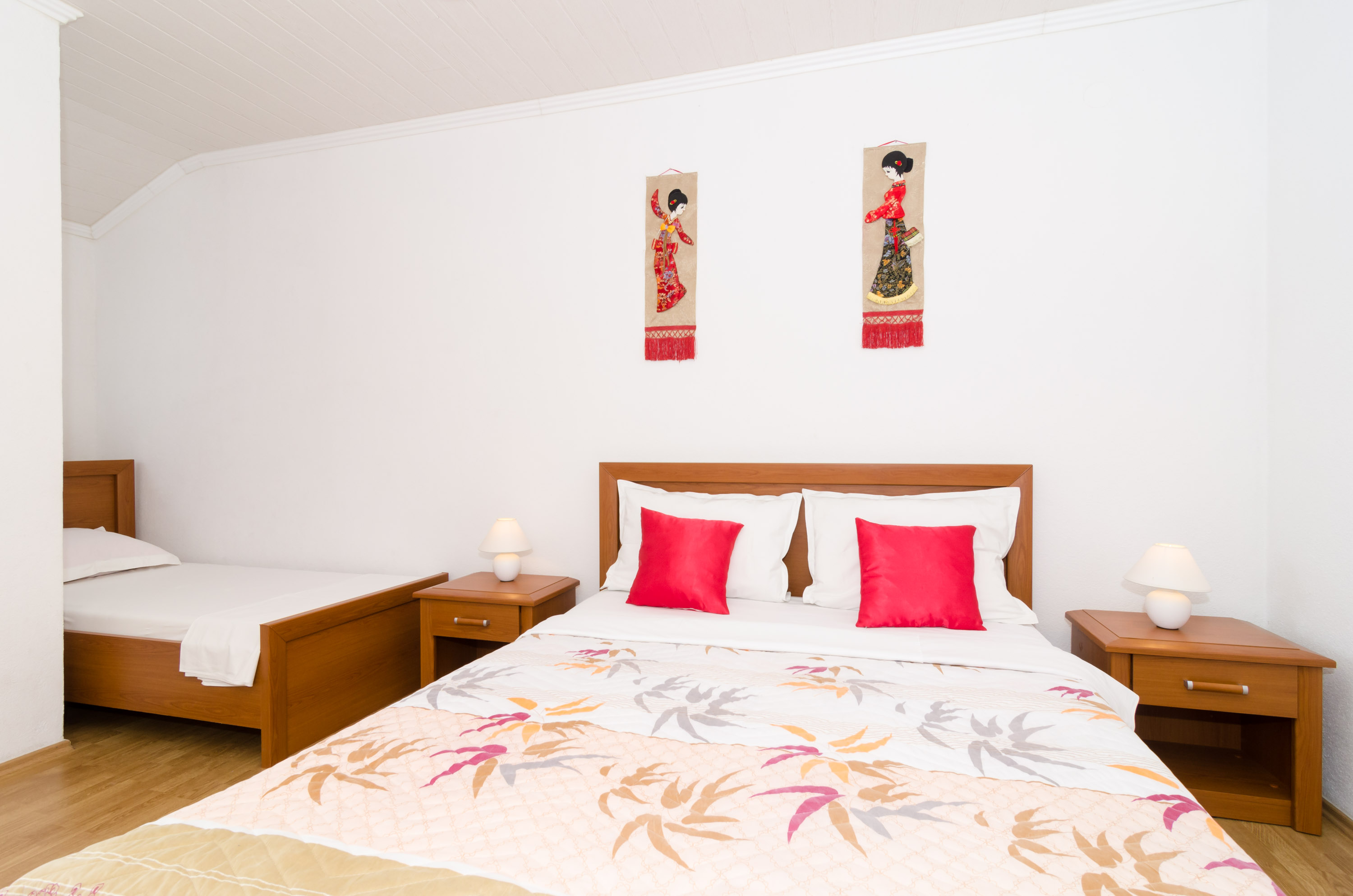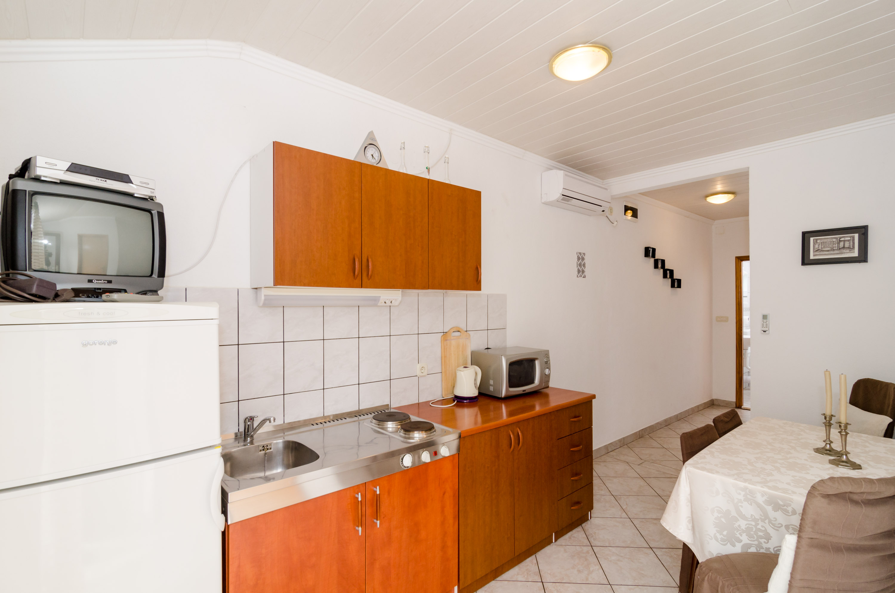 50 m2 (3+2 ležaja), sastoji se od jedne trokrevetne sobe i jedne dvokrevetne sobe,kuhinja, kupatilo, balkon, klimatizacija,pogled na more, parking, tv-sat.