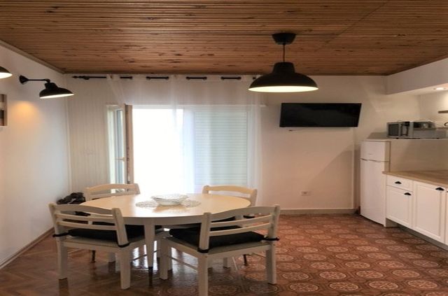 50 m2 (3+2 ležaja), sastoji se od jedne trokrevetne sobe i jedne dvokrevetne sobe,kuhinja, kupatilo, balkon, klimatizacija,pogled na more, parking, tv-sat.